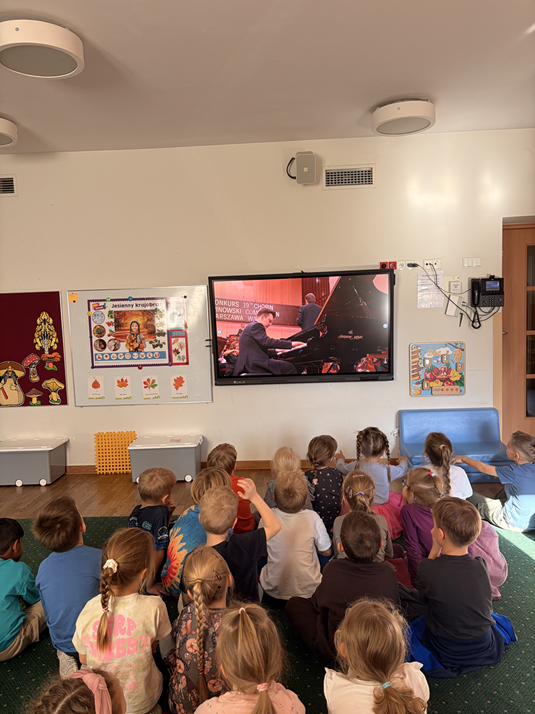 W związku z konkursem Chopinowskim 2 najstarsze grupy fioletowa i granatowa uczestniczyły w zajęciach muzycznych.